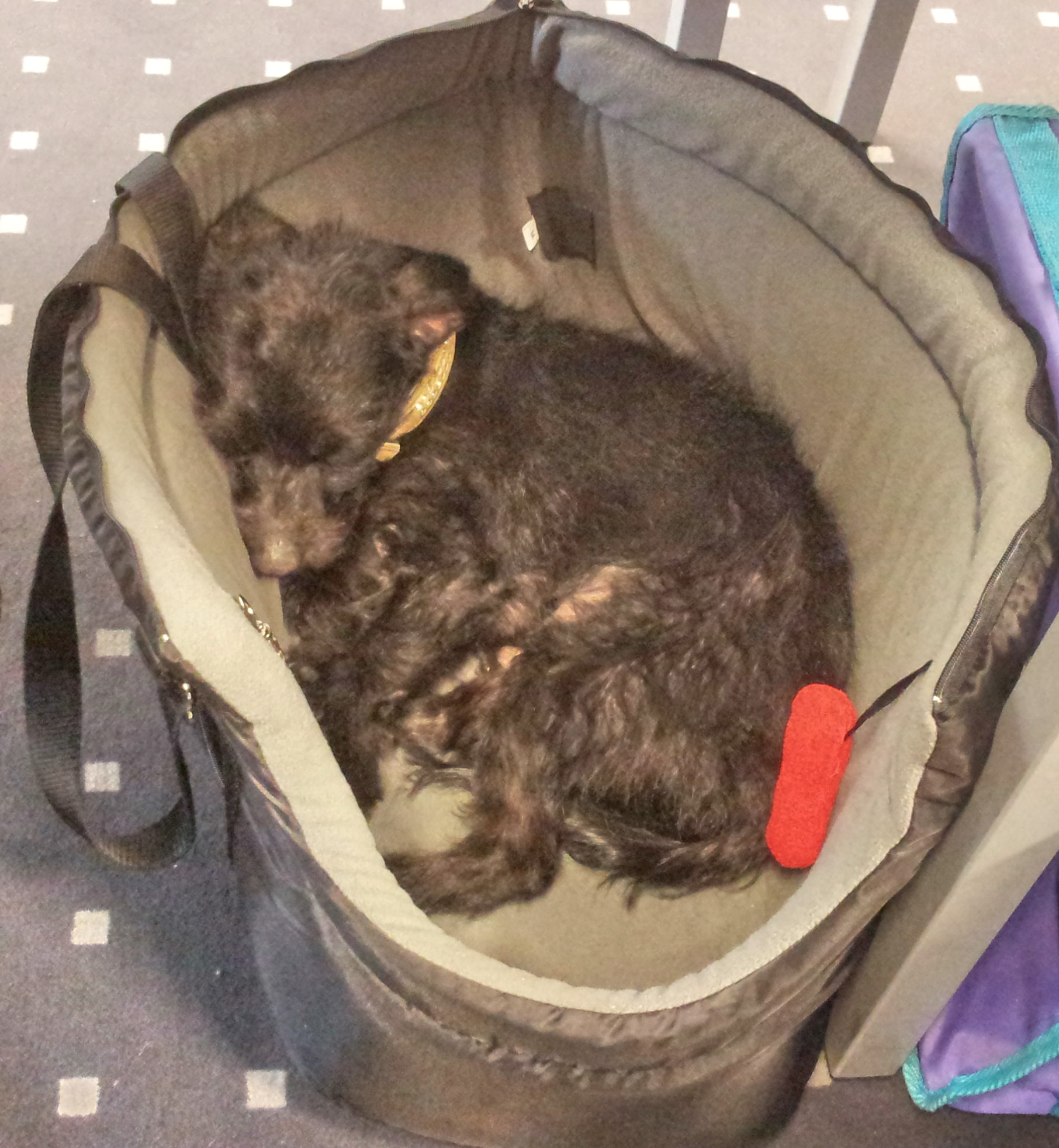 Ich schick euch natürlich ein paar Fotos mit wie es mir geht, natürlich streite ich nach wie vor mit meiner "Dosenöffnerin" um den Kopfpolster im Bett, in der Tasche liege ich nur weil mir im Fortbildungskurs von ihr sooo fad war das ich eingeschlafen bin, und am Barhocker darf ich nur wenns heißt "Sperrstunde!"