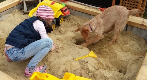 Mittlerweile ist sie ein Monat bei uns und hat sich schon gut eingelebt, ist stubenrein und war auch schon das erste Mal auf Besuch in der Hundeschule. Sie liebt Spaziergänge, spielt gerne mit dem Ball im Garten und knabbert am liebsten Schweineohren, aber am liebsten tollt sie den ganzen Tag im Garten herum. Giovanna hat sich auch bereits mit unserem Nachbarhund Toby angefreundet. :)