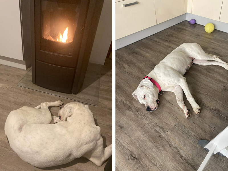 Sie ist so ein tolles Wesen! Stofftiere liebt sie sehr und vor dem Ofen gefällt es ihr auch ganz gut. Sie wird sehr viel ausgepowert. 😊