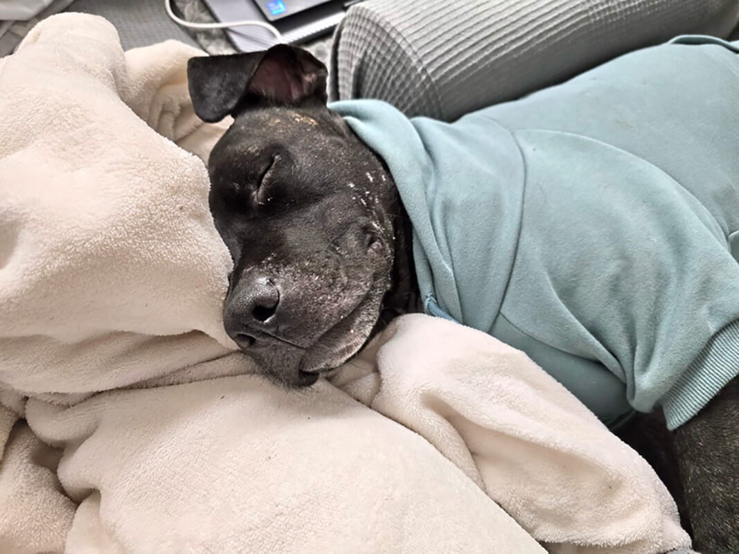 Wir haben Grisu ganz schnell liebgewonnen und genießen seine lustige Art und die ausgedehnten Kuscheleinheiten. Natürlich sind wir noch dabei zusammenzuwachsen und müssen noch einiges lernen, aber ich glaube, auch er fühlt sich nach wie vor sehr wohl.Wie besprochen haben wir die Tollwut-Impfung gleich nachgeholt und Grisu sowohl bei Animaldata als auch Tasso registriert. Auch das Futter stellen wir gerade um und die roten Stellen haben begonnen, sich zu bessern.