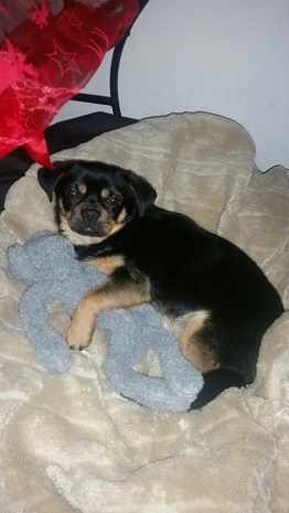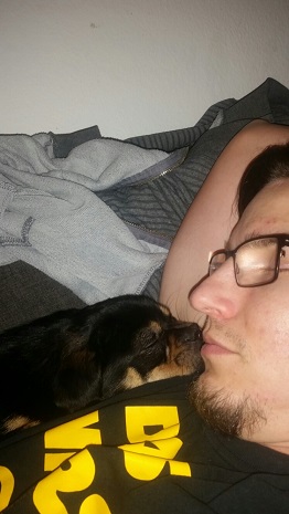 Danke für das erste Foto mit Gustl. Er ist uns schon sehr ans Herz gewachsen. Von Tag zu Tag wird er entspannter und aufgeweckter. Man muss ihn einfach lieben diesen "Mini-Rottweiler".