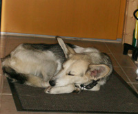 Ebenso gab es daheim von Anfang an keine Schwierigkeiten. Sie ist klug und lernt schnell. Das einzige "Problem" liegt darin, daß Hanne als ehemals ausgesetztes Wesen schlecht aushält, vom "Rudel" weggebracht zu werden. D.h. einer geht Gassi und der Rest der Familie bleibt zu Hause- das geht nicht so gut. Aber mit der Zeit lernt sie, daß wir jedesmal gemeinsam wieder heimgehen und sie wird das Vertrauen entwickeln können, daß sie für immer ein Teil unserer Familie ist.