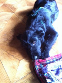 in die Hose gemacht und konnte erst nach einigen Tagen draußen ein Lulu machen. Aber meine Eltern haben einfach alle Teppiche weggegeben und einen Wischmop gekauft - dann war das kein Problem . Außerdem passiert mir das jetzt nur wenn ich aufgeregt bin, alles andere mache ich draußen. Ich schlafe schon durch und Mutti oder Papi gehen gleich morgens um halb sieben mit mir in den Park. Manchmal warten da schon Freunde ! Ich kann aber auch schon prima ohne Leine gehen und wenn meine Eltern mich rufen, komme ich immer gleich ! Überhaupt loben sie mich sehr und sagen, ich sei sehr brav und auch sehr intelligent ! Das heißt wohl so was wie klug und ich gebe mir ja auch große Mühe, immer alles richtig zu machen.
