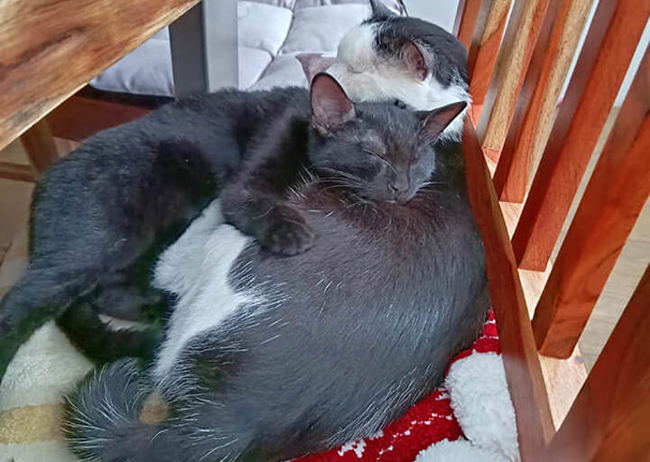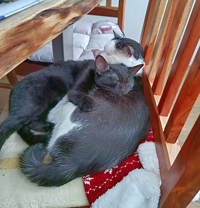 Ende letzten Jahres ist dann noch der kleine Nox zur Familie gekommen und versteht sich bestens mit den beiden erwachsenen Katzen.