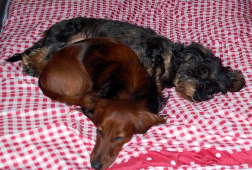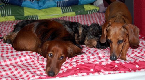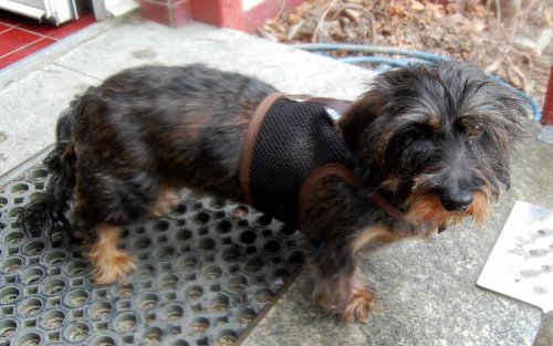 Sie hat nun auch ihr erstes eigenes "Harness" direkt aus Amerika, wie alle anderen Dackelchen auch und ein Halsband mit Namen und Red Dingo. Wenn Sie Lust haben, hänge ich ein paar Fotos dran.