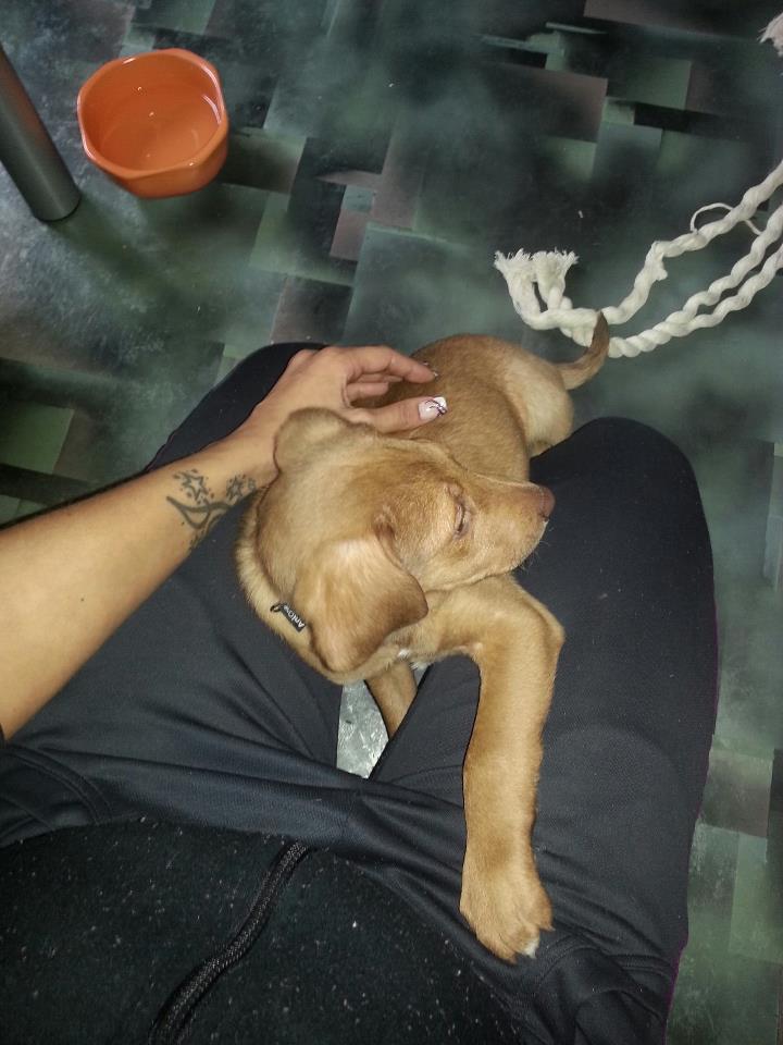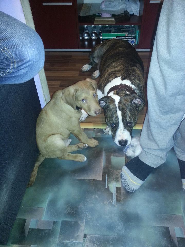 Anbei schicke ich dir mal die ersten Fotos von unserem kleinen Higgins und seinem neuen Freund Justice. Er hat sich bei uns ganz schnell eingelebt und fühlt sich schon extrem wohl. Schlafen tut er ganz viel, aber wenn wir unterwegs sind, dann geht er brav an der Leine mit. Angst vor der Strasse...keine Spur! Gestern hat er uns nur mehr 1 mal in die Wohnung gemacht, ansonsten meldet er sich, sobald er muss sofort.