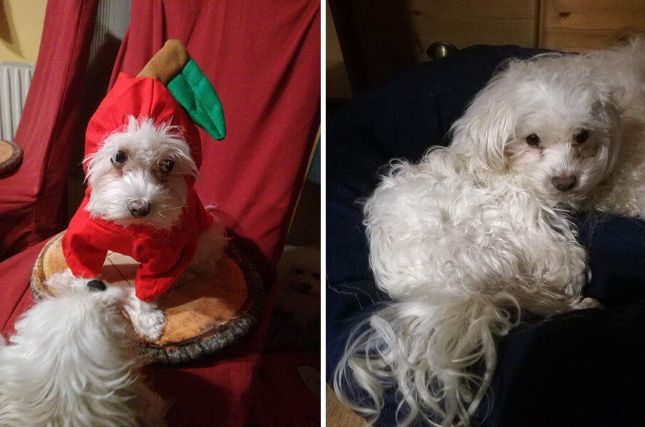 Anbei ein paar Fotos von mir und meinem Schätzchen, meinen Freunden im Rudel und ein Schnappschuss vom Fasching, als ich als Äpfelchen verkleidet war.
