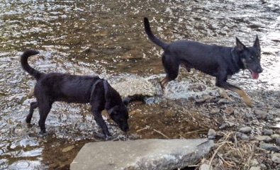 Sein neuer Freund ist ein Dobermann Mix von einem Freund, der auch in unserem Ort wohnt.