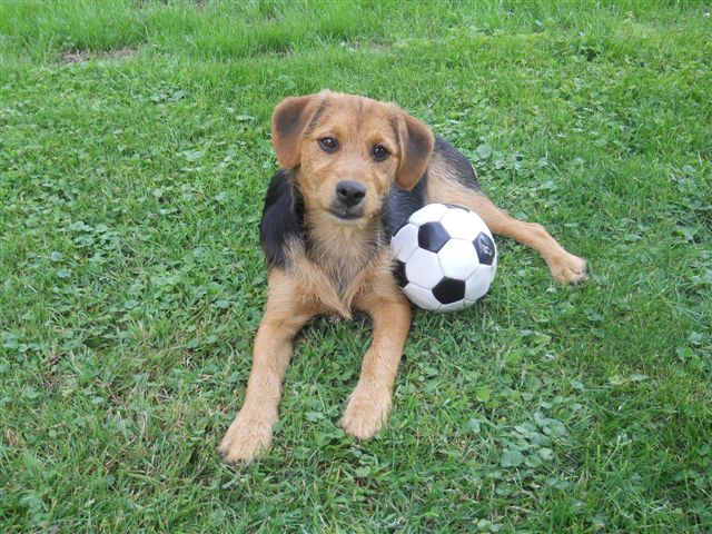 Hiermit senden wir Ihnen einige Fotos von unserem lieben Jacky (vorher Bruno). Jacky fühlt sich bei uns sehr Wohl, er ist ein lieber föhlicher Kerl und er ist schon sauber. Spielen und Spaziergänge (wo wir andere Hunde zum spielen begegnen mag er sehr). Wir waren auch schon beim Tierarzt impfen-er war sehr tapfer.
