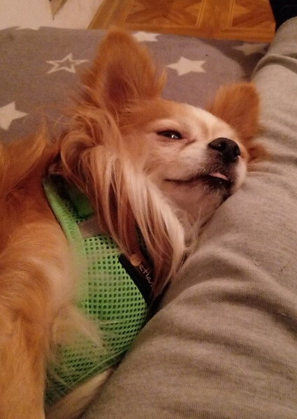 Mit Daisy und Teddy (Chi's) gibt es keine Probleme, er spielt auch mit ihnen und die Katze schaut er gar nicht an. Die Katze steht neben ihm, aber er ignoriert sie nur. Doch den Mico (Bullmastiff), den knurrt er an, aber der Mico ist eh so gutmütig, der macht ihm nichts. Der denkt sich nur ..was will der Zwerg von mir😉😄😄. Nur bei gewissen Geräuschen schreckt er noch manchmal zusammen, aber er läuft nicht weg. Denn als er zu uns kam war es sehr geräuschempfindlich, aber es wird immer besser.