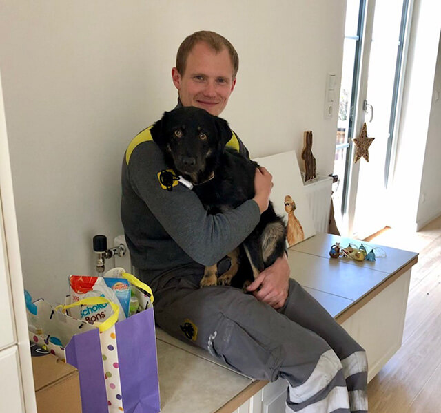Er ist sehr anhänglich, dankbar und möchte immer in unserer Nähe sein. Alle, die ihn bereits kennengelernt haben, sind ganz verliebt in ihn und das freut uns natürlich auch sehr :-)