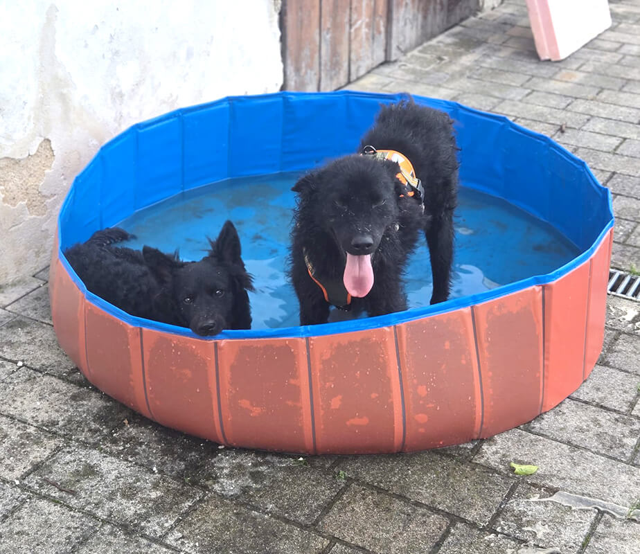Mittlerweile öffnet Jolly Türen (wortwörtlich 😅), begrüßt Besucher charmant bellend und folgt Salsa bei jedem Abenteuer. Aus dem zurückhaltenden Neuling ist ein neugieriger, fröhlicher Familienhund geworden, der uns jeden Tag zum Lachen bringt.