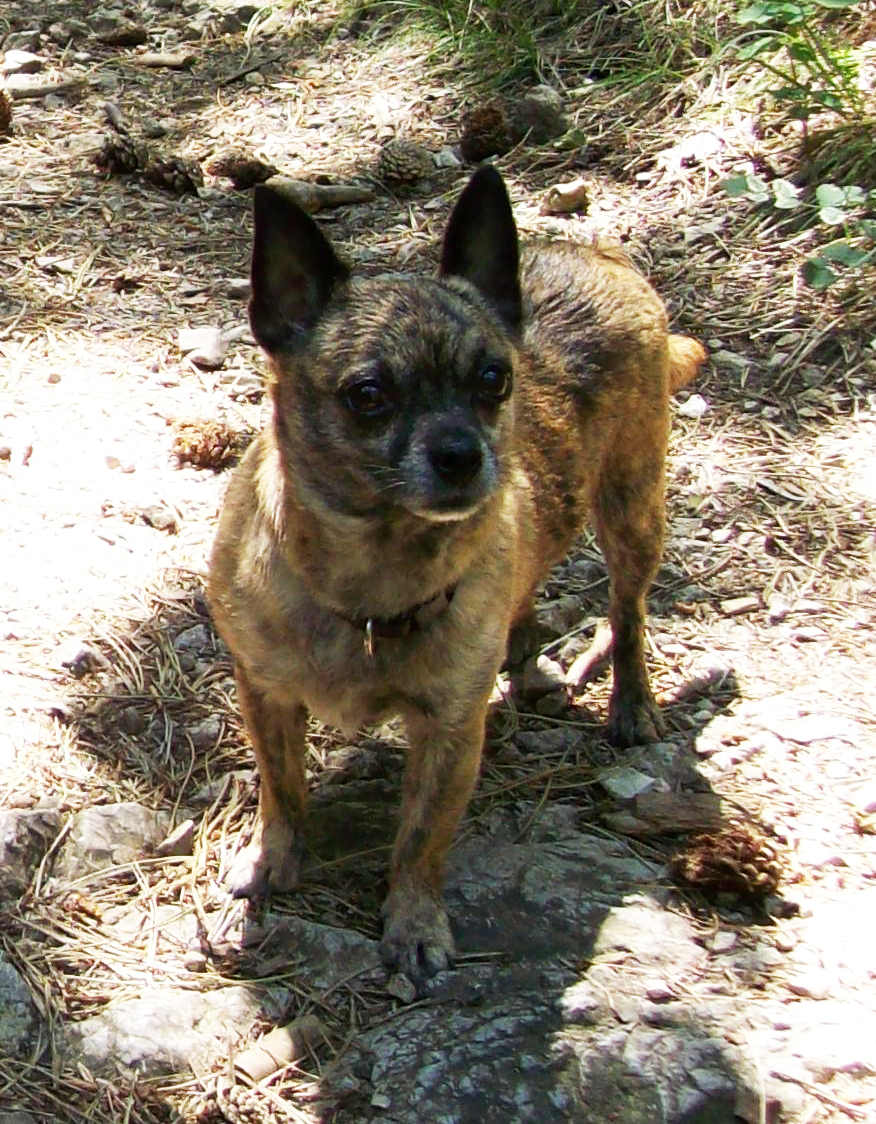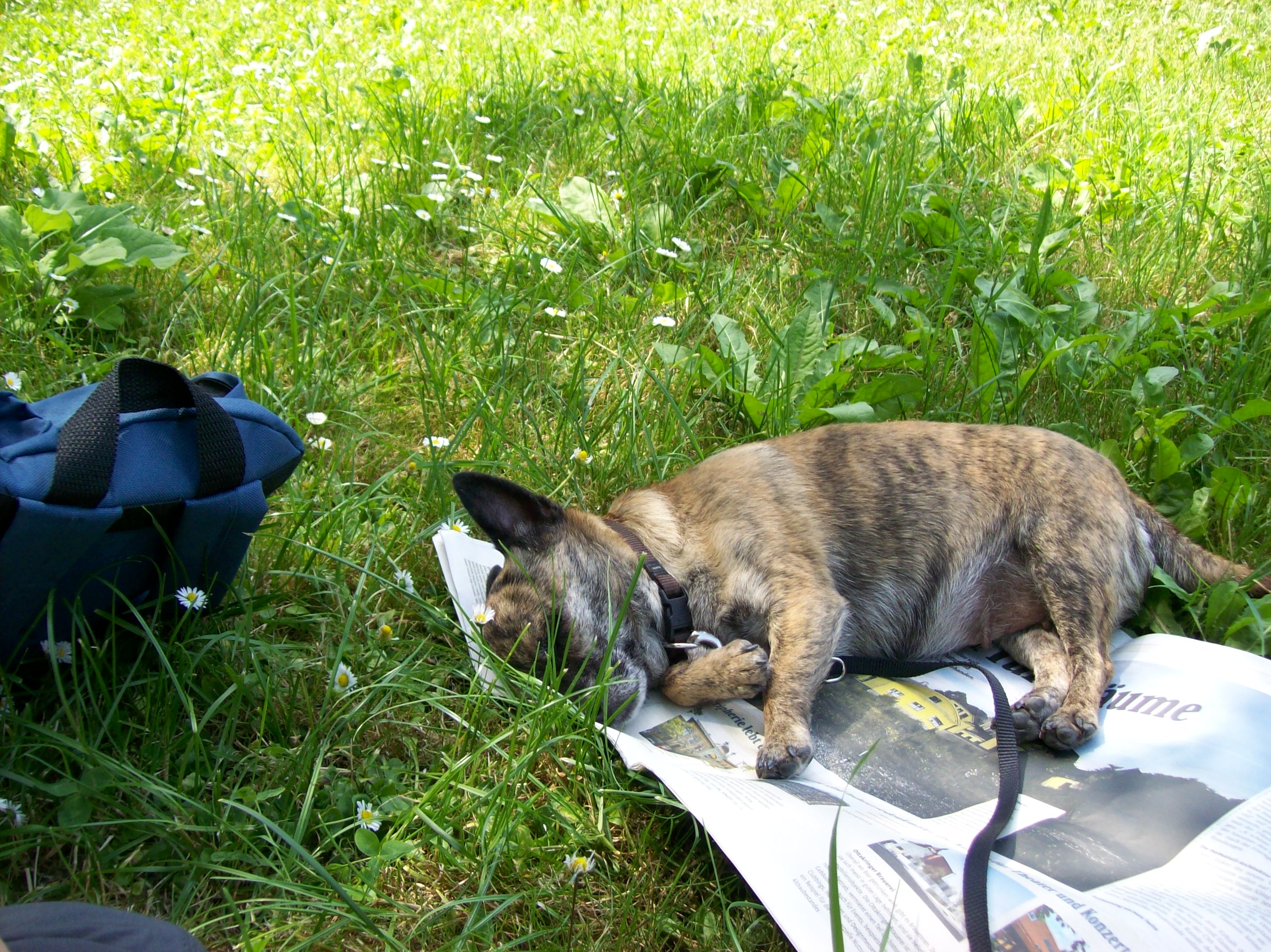 Lena und sie verstehen sich prima, beide sind freundliche, aber nicht klebrige Hunde - sie teilen sich das Körbchen, die Kleine liegt oft auf der Großen drauf, aber ich kann sie auch problemlos trennen und mal nur mit einer was unternehmen, ohne dass die andre die Krise kriegt, sehr angenehm. Das Problem mit ihrer Angstaggression gegenüber Männern haben wir nicht gelöst, aber im Griff, indem ich sie zB beim Wandern sofort zu mir rufe, wenn ein Mann am Weg auftaucht, und ihr Leckerlis gebe, bis der vorbei ist. Somit läuft sie bereits zu mir, wenn einer kommt, statt ihm aggressiv entgegen. Sie hat mit konsequenter Diät und viiieeeel Bewegung schon fast 1 1/2 kg abgenommen - ich schätze, 1/4 kg muss noch weg, dann ist sie idealgewichtig. Fit ist sie schon, wir können 3 Stunden am Stück in normalem Tempo wandern und es ist wunderschön zu sehen, wie viel Spaß ihr einfach alles macht. Sie kann sich hemmungslos genießend 5 min am Stück in der Wiese wutzeln. Ich arbeite ja auf einem Hof mit über 40 Tieren und auch da hat sie sich völlig problemlos eingefügt - Pferde, Katzen, Schafe, Hühner, alles kein Problem.