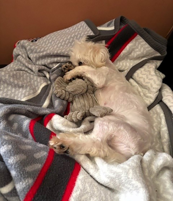 Wenn man die Fotos anschaut, wie wir sie geholt haben und was nach so kurzer Zeit aus ihr geworden ist, dann glaubt man nicht, dass das das gleiche kleine Geschöpf ist. In manchem Verhalten macht sich ihre Vergangenheit noch ein bisschen bemerkbar. Wenn man von oben auf sie zugeht, zieht sie sofort den Schwanz ein und duckt sich weg. Und sie fürchtet sich vor unserem Einfahrtstor. Das dürfte sie an schlechte Zeiten erinnern. Da tragen wir sie jetzt immer durch, dann ist es für sie nicht so stressig. Sie frisst brav, ist nicht heikel und liebt alle Arten von Leckerlis. Wenn man sie krault, legt sie den Kopf richtig in die Hand und kann nicht genug davon bekommen. Am Abend kuschelt sie dann mit uns am Sofa und sie schaut gerne fern. Speziell Tiersendungen mag sie sehr. Auch für kurze Zeit alleine bleiben ist gar kein Problem, was bei uns so gut wie nie vorkommt, weil ich mein Büro zu Hause habe und Ernst ja schon in Pension ist. Auch das Stubenrein funktioniert schon ganz gut. Nur noch ganz selten passiert ein Malheur, was ihr sehr unangenehm ist und sie sich dann richtig schämt.
