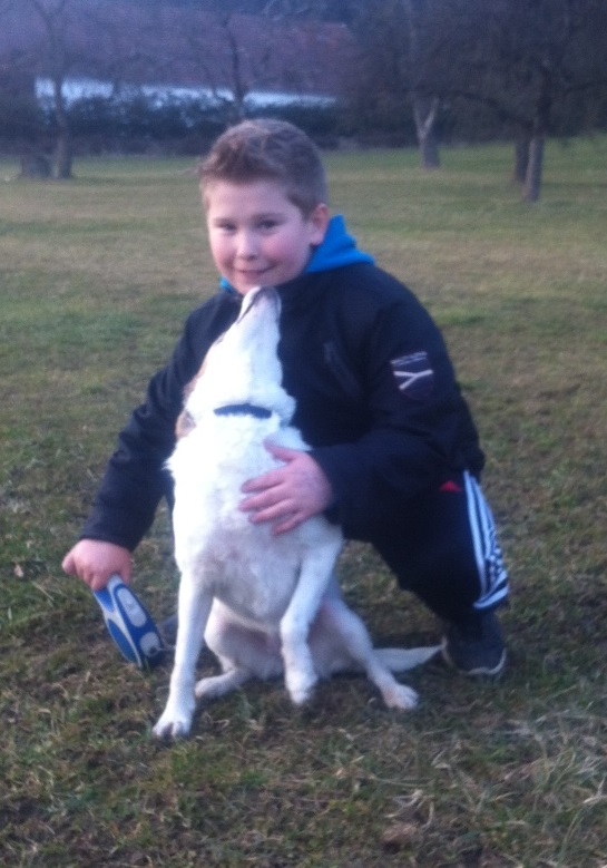 Alma hat sich gut eingelebt, sie mag meine Kinder und Enkelkinder und Neffen schon sehr, überhaupt meine ganze Familie. Jeder will mit ihr spazieren gehen und sie liebt es, den ganzen Tag gestreichelt zu werden. Sie ist sehr gutmütig und wedelt den ganzen Tag mit dem Schwanz. Sie möchte am liebsten den ganzen Tag nur essen.