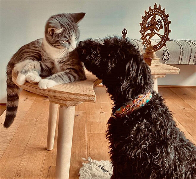 Unser Katzenmädchen Kali ist seine Spielgefährtin.