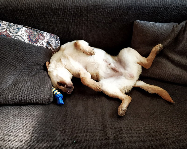 Ansonsten ist er ein Schmusekönig, der hauptsächlich auf seinem Rücken liegt und Streicheleinheiten einsammelt.