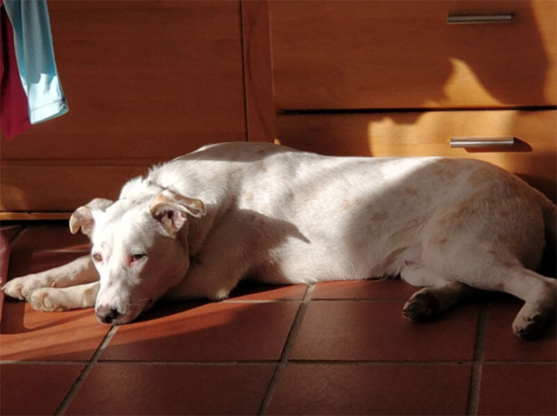 Wie wir aus seinem Verhalten sehen können muss er viel Liebe und Zuneigung von seinen BetreuernInnen bekommen haben, er geht auf Menschen offen und mit viel Interesse zu. Viel Schwanzwedeln gehört für uns mittlerweile zum Alltag.