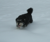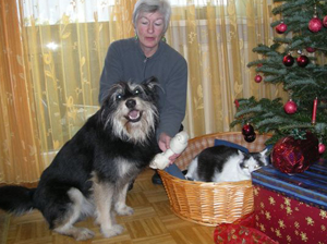 erstaunt,stand doch im Inserat,dass ich ein handlicher, kleiner Schauzermix wäre....und dann stand ich da...ein knuddeliger Zottelbär in der Größe eines kleineren *Berhardiners*...*