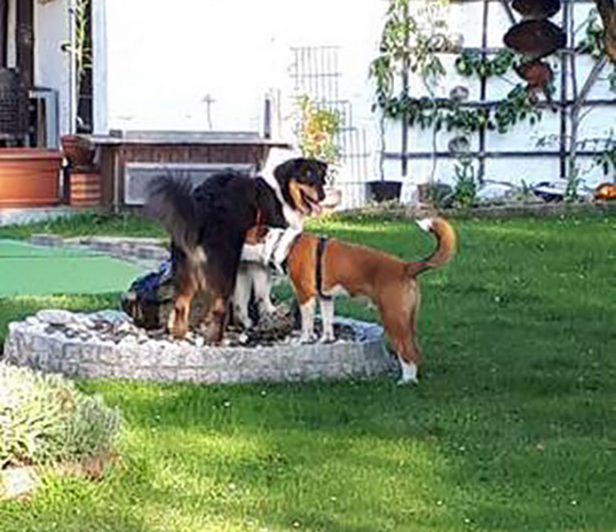 Lacky hat sich sehr gut bei uns ein gelebt. Er ist ein sehr anhänglich und verschmuster lieber Kerl. Er spielt auch sehr gern mit anderen Hunden. Wir haben schon etliche Freundschaften geschlossen.