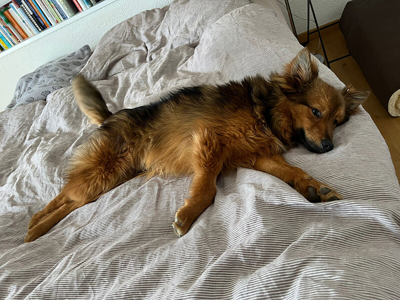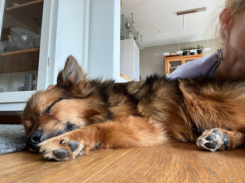 Lalo wuselt immer in meiner Nähe herum und hat mich im Blick. Weil ich weiss, dass ihn ein lautes Geräusch noch erschrecken kann, bin ich sehr vorsichtig.