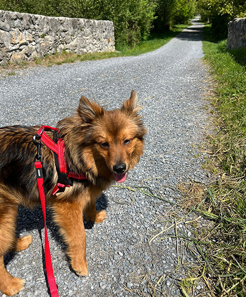 Lalo hat sich sehr gut eingelebt. Es berührt mich immer wieder, wie sehr er sich über unsere Zuwendungen freut. Seit einigen Tagen darf er auf Wiesenwegen ohne Leine gehen. Er macht das prima!