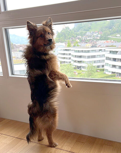 Lalo ist ein unglaublich anhänglicher und verschmuster Hund. Es ist toll zu sehen, wie gut er sich entwickelt. Im Juni fahren wir dann mit ihm und den Büsis in unser kleines "Berghüsli" in Parpan. Da oben wandern wir dann auf Alpwegen herum.