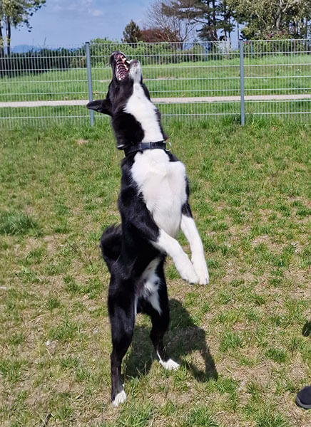 Dem Larry geht es super, er ist schon im ganzen Ort beliebt. Wir haben vor 2 Wochen mit seinen ersten Ausbildungen begonnen und er genießt es.