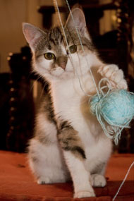 Die beiden stellen unsere Wohnung ganz schön auf den Kopf: wenn Leeloo nicht gerade mit einer Klopapierrolle beschäftigt ist, um zu überprüfen, in wieviel kleinste Einzelteile so ein Ding zerlegbar ist, oder sie nicht gerade eine Teekerze im Maul von A nach B und dann weiter nach C bringt, dann flitzen die zwei Ladies kreuz und quer durch die Wohnung und man kann eigentlich nicht wirklich sagen, wer da wen jagt. mit einem Satz: bei uns ist immer remidemi zu Hause.