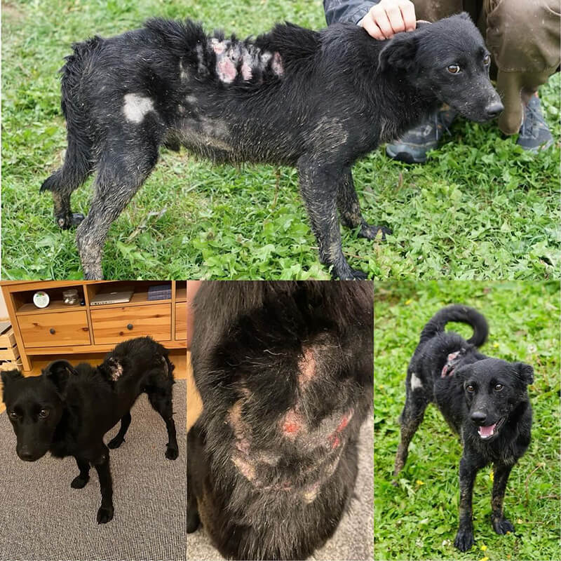 durch seine extreme ängstlichkeit war der start sehr schwer 🥹 ein jahr später fuhren wir nach svilos in serbien und holten eddie (toby) als pflegling zu uns. er musste aufgrund seiner starken hautkrankheit dringend aus dem tierheim (sh. foto).