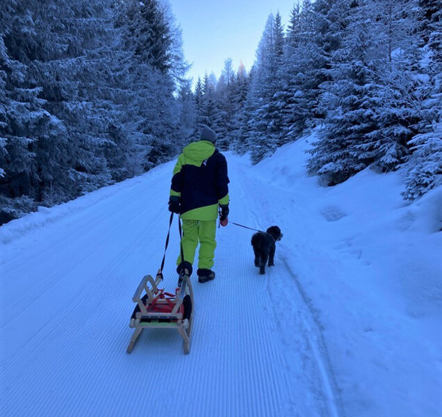 Er geht total gern mit uns rodeln. Einfach nur im Schnee zu toben (vorallem mit seiner Hundefreundin Lucy) steht natürlich auch hoch im Kurs. Und danach eine lecker gefüllte Kong und er schwebt im Hundehimmel.