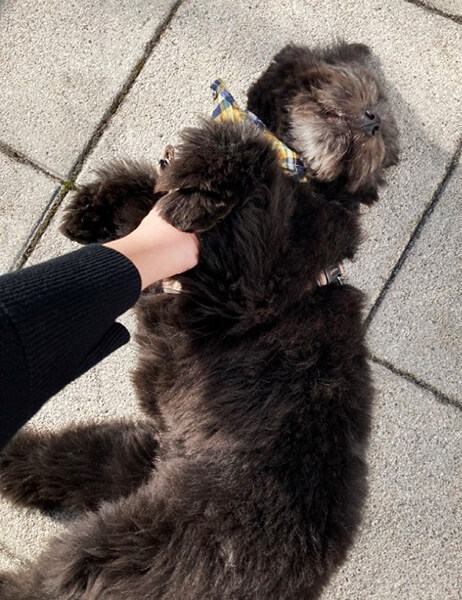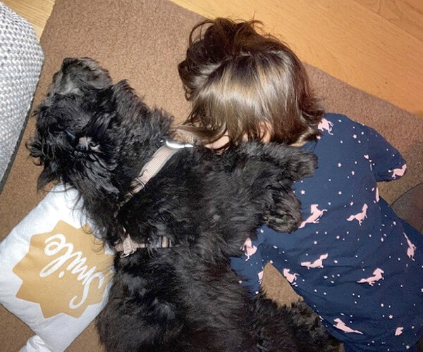 Er ist eine totaler Schmuser und vor allem aber total motiviert was neues zu lernen. „Sitz“, „Platz“ und „Pfötchen geben“ macht er schon ganz brav. Wenn wir ihn rufen kommt er in Windeseile angelaufen und man wird auch gleich anständig abgeleckt 🥰