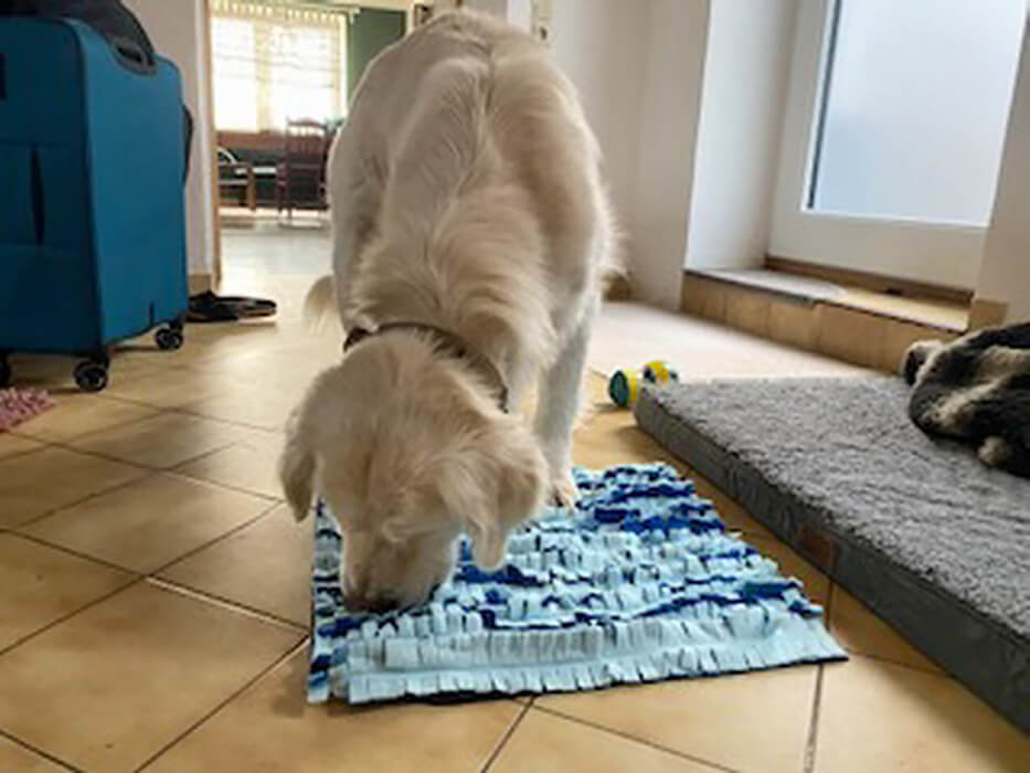 Was ich noch nicht zusammen bekommen habe, ihn länger als 15 Minuten alleine zu lassen. Wenn Sie mir da noch Tipps geben könnten, wäre ich Ihnen dankbar.