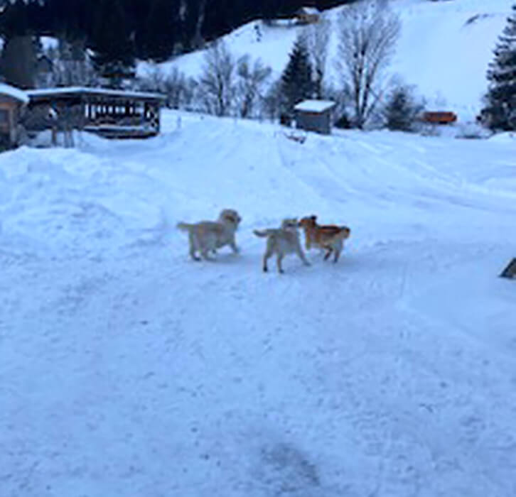 Fotos: Sein erstes Spielvergnügen mit Retriever Hündin und Rüde, er lernt durch die anderen Hund sehr viel. | Leos Lieblings Suchspiel | Leo beim Spaziergang – solche Wald und Wiesenspaziergänge, bei denen wir alleine sind, da blüht er richtig auf. Der Hof dahinter ist sein Zuhause.