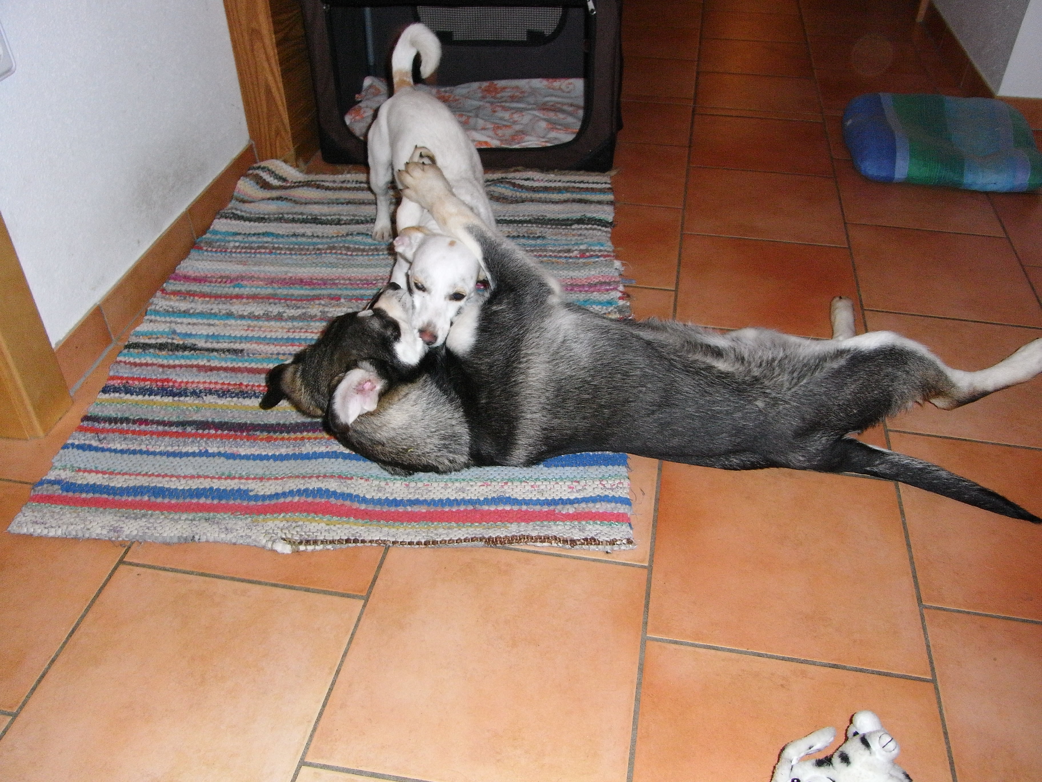 Ach ja, am Samstag darf er zum ersten Mal in die Welpenschule und nächsten Dienstag bringen wir Abby gemeinsam zum sterilisieren, damit er auch die Tierärztin kennenlernt.