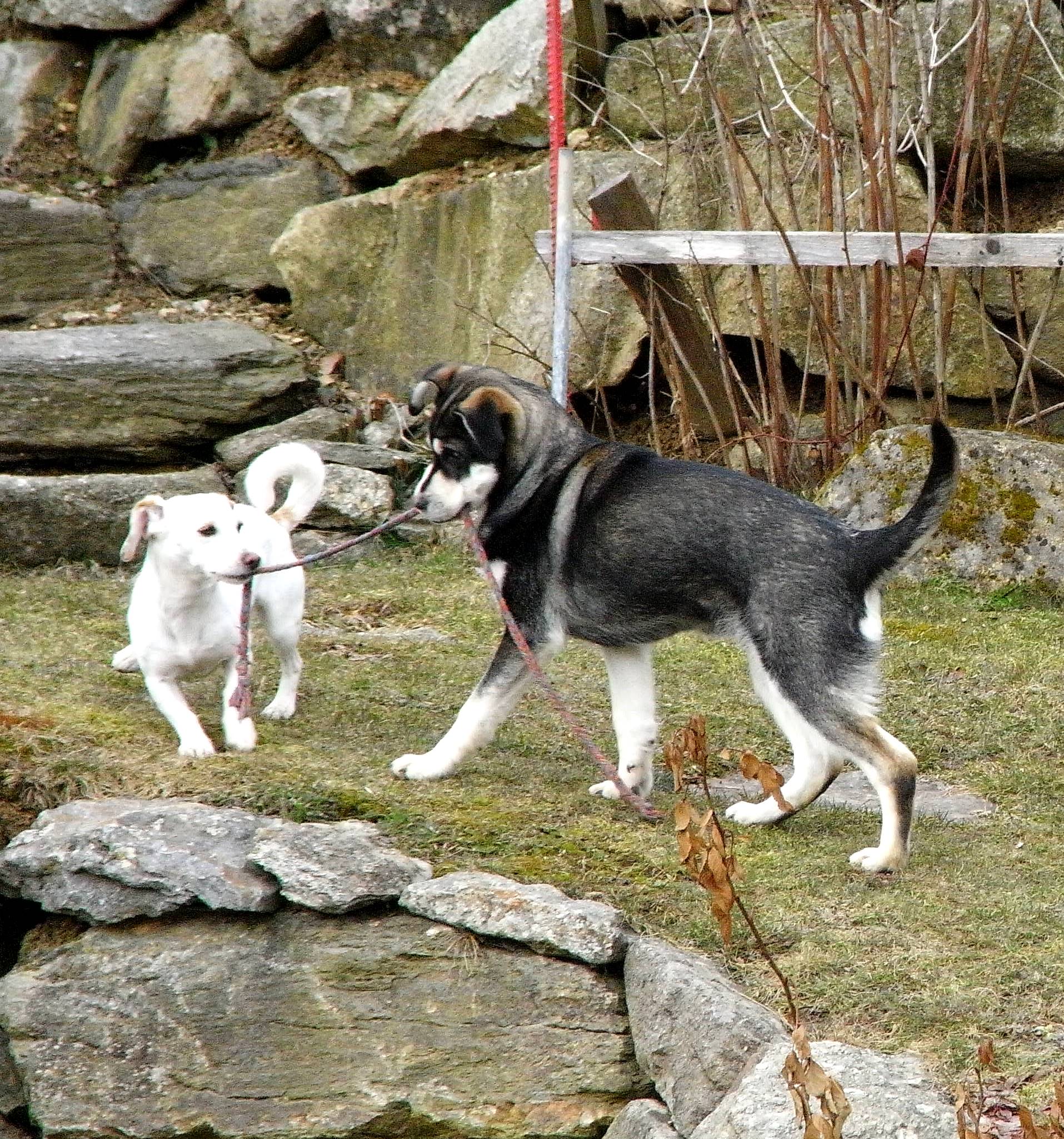 endlich komm ich dazu, Ihnen zu antworten. Uns geht es nach wie vor sehr gut. Hogan hört inzwischen auf den Namen Leo und ich glaube, er hat sich in der Zwischenzeit ziemlich gut bei uns eingelebt. Irgendwie ist es komisch, wieder ein Baby im Haus zu haben, aber es ist auch spannend. Er liebt unseren Garten, vor allem wenn er mit Abby, unserer Jack Russel Hündin, draußen herumtollen kann. Von spazieren gehen hält er dafür noch nicht so viel und eines können Sie mir glauben, wenn er mal liegt und nicht mehr gehen mag, dann bleibt er auch liegen, da kann kommen was will!