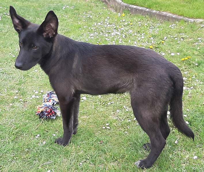 In unserem Garten jagt er den Bällen hinterher und fühlt sich wohl, nur draußen außerhalb des Gartens ist er noch ängstlich und auch das Gehen an der Leine müssen wir noch üben. Aber mit viel Liebe und Geduld bekommen wir das hin.