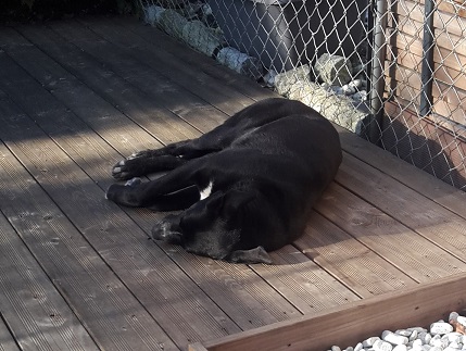 Anbei schicke ich ein paar Fotos von Letty. Sie hat etwas zugenommen und ziemlich brav geworden. Sie schläft bei uns im Haus überall, nur meistens nicht auf ihrem Platz, geht mittlerweile super brav an der Leine (auch frei läuft sie schon mit Maulkorb herum und tollt durch die Gegend und hört wenn man sie ruft). Sie jagt unsere Katze unheimlich gern, bis diese mal wieder die Schnauze voll von Letty hat.