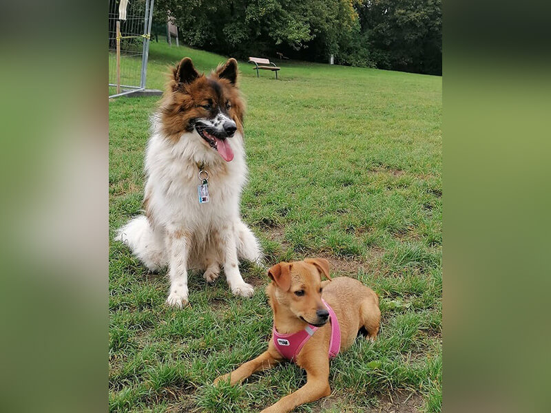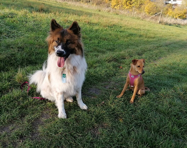 Tobi hat einen ausgeprägten Beschützerinstinkt ihr gegenüber entwickelt. Kommt es mal zu einer Streiterei am Roten Berg, ist er sofort da und vertreibt den Störenfried. Lexy hat bereits zwei + zwei zusammengezählt und provoziert manchmal andere Hunde, nur um sie zu Tobi zu locken, der sie dann verjagt. Sie macht sich einen Spaß daraus. 🙈
