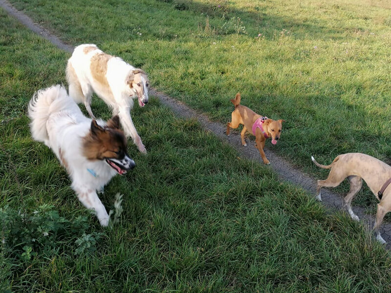 Ansonsten hat sie sich bereits recht viele Hundefreunde gemacht. Lustig finde ich, wie extrem schnell sie läuft. Bis auf einen Windhund hat sie sonst keine Konkurrenz am Roten Berg. Sie ist muskulös geworden und läuft sehr gerne. Auch ihre Ausdauer ist erstaunlich, sie hechelt kaum nach einem zehnminütigem Lauf…