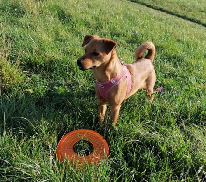 Bei der ersten Trainingsstunde kam ihr geheimes Talent zum Vorschein: Hundesport. Sie hat den Parkour beim ersten Mal fehlerfrei und sehr flink gemeistert: etwas dass die Hundetrainerin in ihrer gesamten Laufbahn noch nicht erlebt hat, sagt sie. Tobi war noch nie auch nur in der Nähe des Parkours.... absolut kein Interesse. 😂