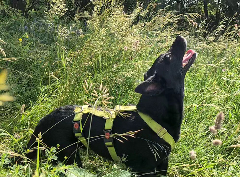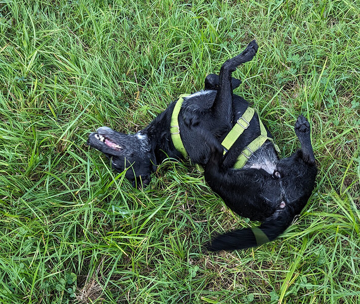 Lila hat sich als richtige Athletin herausgestellt. Seit sie frei laufen darf, entdeckt sie die Welt im Laufschritt. Klettert und springt überall rauf und runter, schlägt vor Freude richtige Purzelbäume in der Wiese, und wälzt sich in allem was besonders "gut" riecht. Es macht mir einen riesen Spaß mit ihr gemeinsam auf Entdeckungstour zu gehen.
