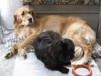 anbei ein Foto von unseren zwei. Sie vertragen sich sehr gut. Lili ist sehr folgsam und gelehrig, reagiert auf ihren Namen, befolgt "sitz" und "komm her". Geht mir überall nach. Wenn sie ihren Kauknochen hat, dann ist die Welt in Ordnung. Sie ist stubenrein und wirklich süß. Sie liebt Kinder, nur bei Männern ist sie vorsichtig. Alles in allem ist sie eine Bereicherung in meinem Leben.