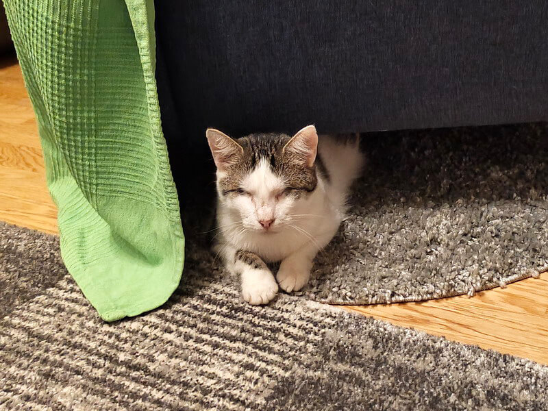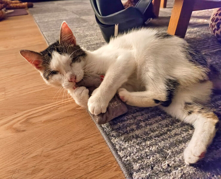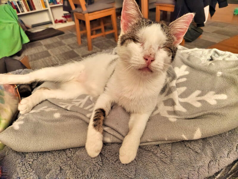Zusammenfassend hatte meine Tierärztin recht, die ganze Eingewöhnungsphase verläuft nicht wirklich anders als mit einer sehenden Katze, es ist also wirklich absolut kein Drama, auch einer behinderten Katze oder überhaupt einem behinderten Tier ein Zuhause zu geben!