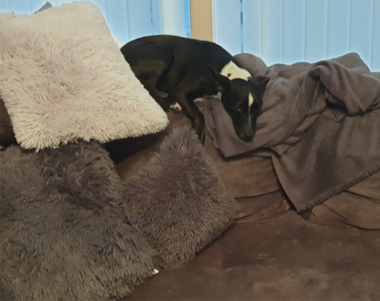 Lou (vormals Shelly) ist nun schon ein halbes Jahr bei uns und wird von uns so gut es geht verwöhnt, geschmust und erzogen (letzteres manchmal weniger erfolgreich :)... sie ist ein Sonnenschein, wildes Teufelchen, quietschfidel, top gesund! Mit unseren 3 Katzen klappt es auch recht gut ;)