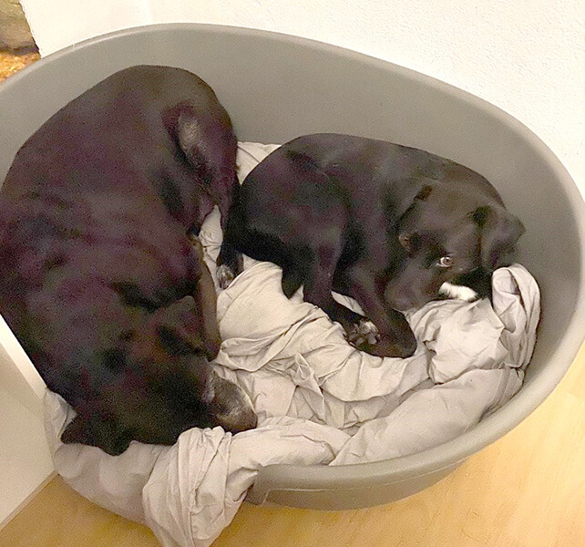 Mit unserem zweiten Hund Timmy hat er sich von Anfang an gut verstanden und mittlerweile sind die zwei beste Freunde. Sie schlafen teilweise sogar in einem Bett :)
