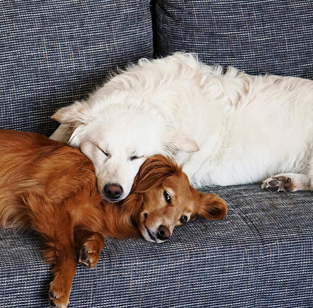 Seit zwei Monaten begleitet uns Lucy nun und hat sich schon völlig bei uns integriert. Sie ist so eine tolle Hündin, war von Beginn an sehr zutraulich und unkompliziert. Bereits am nächsten Tag nach der Ankunft bei uns Zuhause begann sie mit unserer Nala zu spielen. Die beiden verstehen sich prächtig, putzen sich gegenseitig, lernen voneinander, geben sich Sicherheit und spielen mittlerweile beinahe ununterbrochen. Auch unsere Nala profitiert sehr von ihrer neuen Hundefreundin, denn sie bewegt sich nun viel sicherer auf den Straßen und geht viel gelassener mit zuvor für sie stressigen Situationen um.