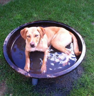 Lucy liebt das Wasser und wir gehen regelmäßig mit ihr schwimmen (im Zuge der Hundeschule). Wenn es draußen heiß ist, bleibt sie lieber zu Hause als mit uns im Auto irgendwohin zu fahren.