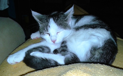 Und jetzt zu meiner Erklärung von vorhin; Da ich es liebe draußen zu sein, will ich auch im Winter draußen sein. Hihihi. Unter tags brauche ich nur vor der Terrassentür sitzen und schon springt irgendwer auf und öffnet die Tür. Aber in der Nacht, hihi, immer in der zeit von ¼ 5 – ¾ 5 will ich rauß. Ich springe auf Susi und Hannes herum, miaue und wenn das alles nichts nützt fang ich am Bett zu kratzen an, und das hilft. Damit das Bett nicht kaputt wird, ist ja erst ein ½ Jahr alt, springt Hannnes auf nennt mich Terroristin  (der schläft bei der Fensterseite) und öffnet das Fenster. Damit ich wieder rein kann lasst er es immer einen Spalt offen, und damit kommen die Eisbären rein. (sagt Hannes immer). ER hat ja recht aber ich will eben raus. Dauert ja nicht mehr so lange bis zum Frühling :).