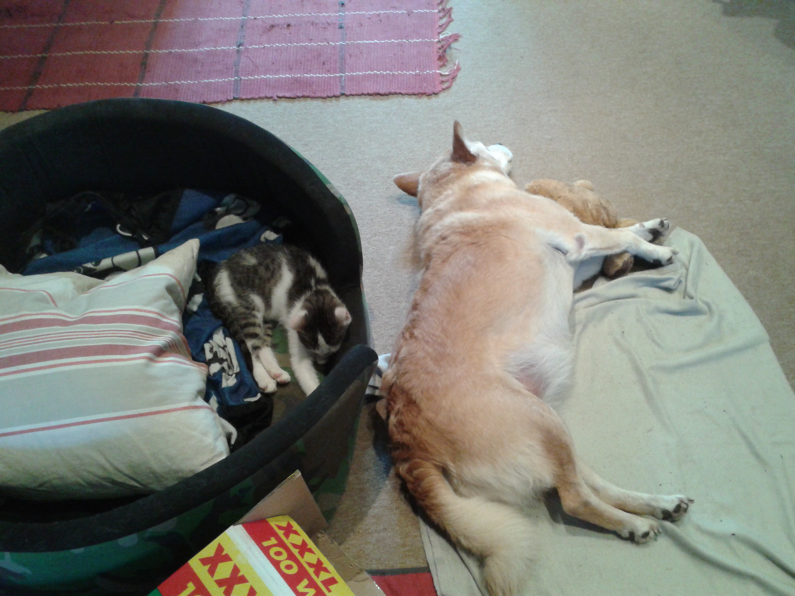 Meine sklavenfamilie lachte einmal ganz viel über mich: ich darf ja nicht auf den Tisch (hie und da mach ich es aber trotzdem, nicht weiter erzählen) und dann habe ich gemerkt das luna vor dem Tisch liegt oder sitzt manchmal auch steht. Einmal als sie vor dem Tisch gestanden ist bin ich einfach auf ihren Rücken gesprungen damit war ich etwas näher zum Tisch. Meine Sklaven meinten nur jetzt brauchen wir nur mehr einen Esel und ein Huhn.